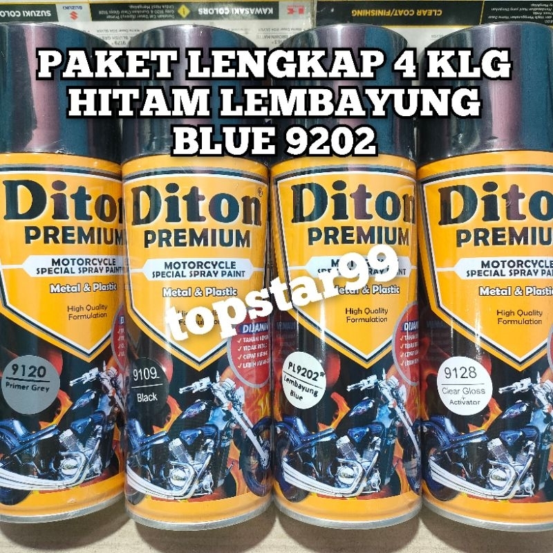 Diton Premium Paket Lengkap 4 Kaleng 400cc Hitam Lembayung Blue Biru 9202 Primer Grey 9120 Black 9109 Clear Glossy 9128
