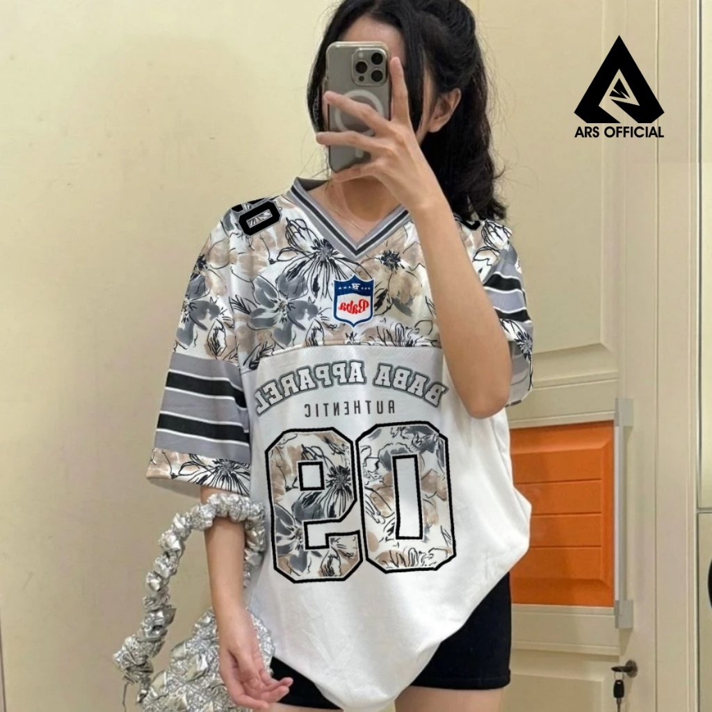 Jersey outfit style Boxy fit Lousina White Flower 09 Streetwear Oversize / vintage / Retro/ music/ nfl /Jersey vintage style