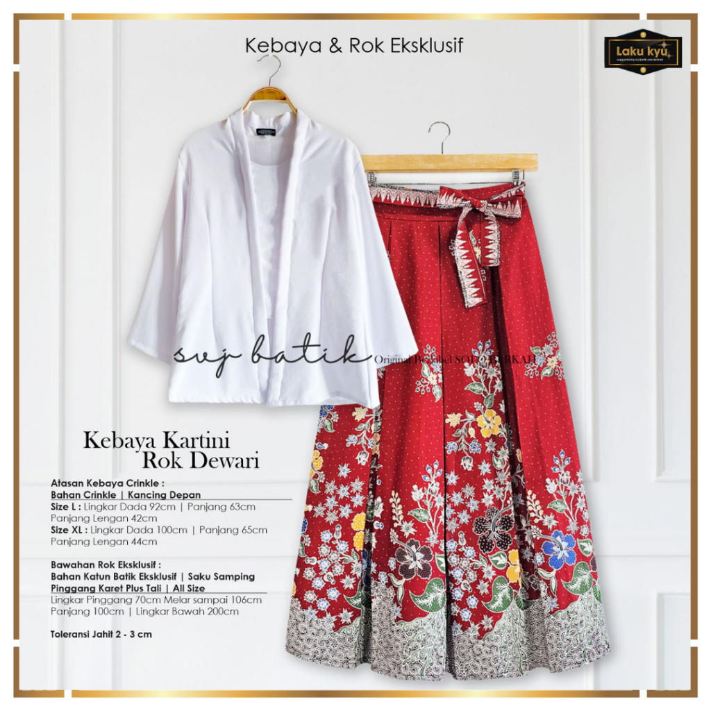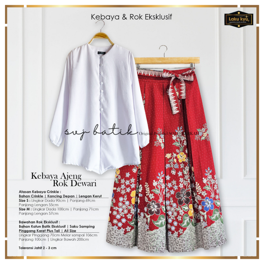 SET WANITA BATIK ROK ATASAN KEBAYA LENGAN PENJANG SETELAN BAJU MERAH PUTIH AGUSTUSAN KATUN HALUS SVJ