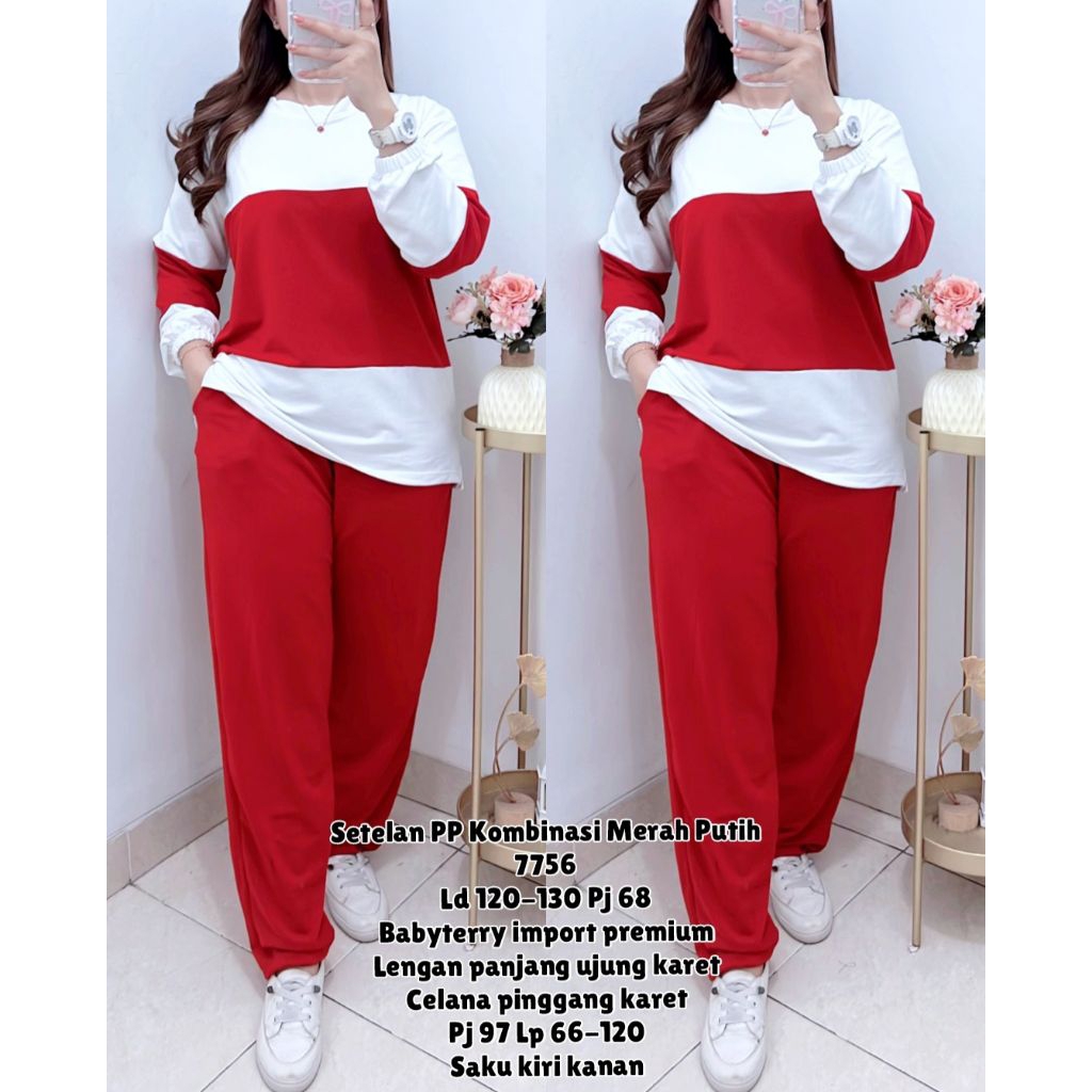 BW 7147 7148 SETELAN BABYTERRY KOMBINASI MERAH PUTIH AGUSTUSAN