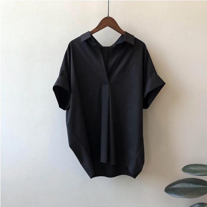 Baju Atasan Wanita - Cocoa Top - Kemeja Santai Katun Twill - Kemeja Shirt Casual Korean Style V-Neck Polos Kerah Nyaman