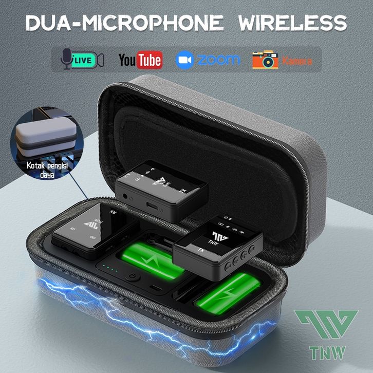 [Star] TNW-N11 Microphone Wireless Dual Mikrofon Clip on / Mic hp dan Charging Case Mikrofon untuk Vlog Youtube