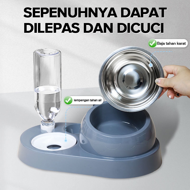 Dispenser Minuman Kucing Otomatis Pet Feeder 2 In 1 Auto Feeder Dispenser Makan Minum Anjing Kucing Kelinci Mangkuk Stai