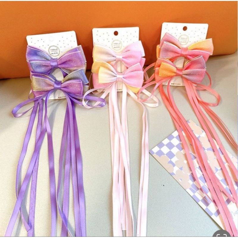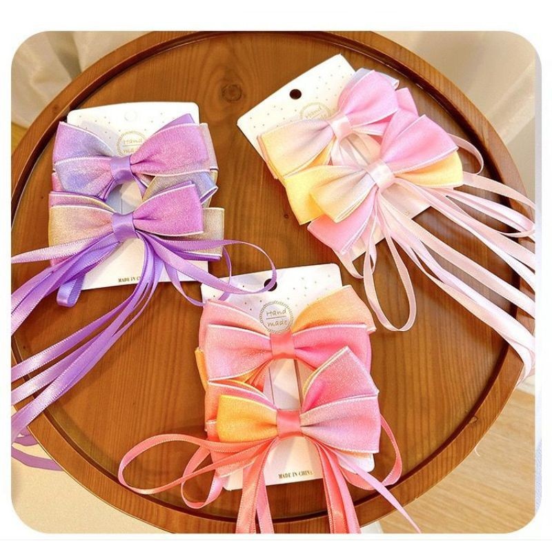 Jepit rambut Double bow pita rambut anak cewek aksesoris jepit fashion kepang korea