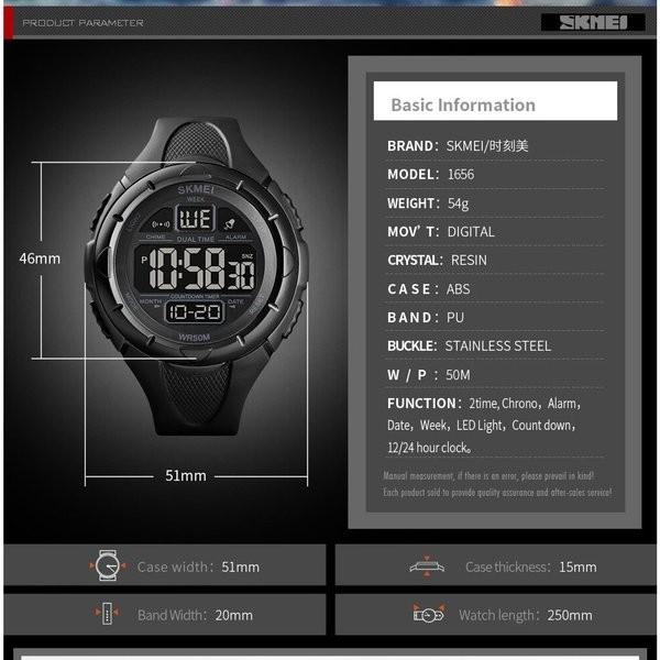 Jam Tangan Pria SKMEI Digital 1656 Black Water Resistant 50m - black