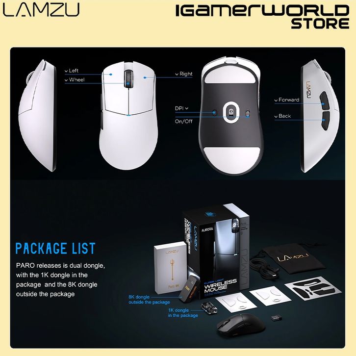Lamzu Paro Aurora 8K Wireless Dual Mode Connection Ultralight Gaming Mouse PAW3950