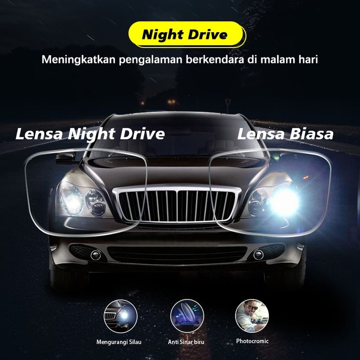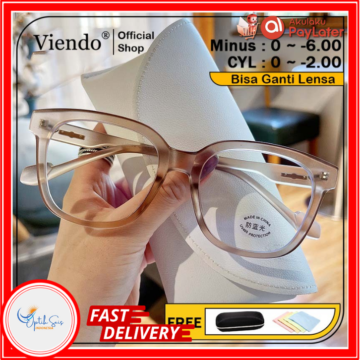 Viendo Frame Kacamata Photocromic Anti Radiasi Blueray Minus Wanita Pria Cowok Korea Fashion Besar TR90 Night Drive Blue