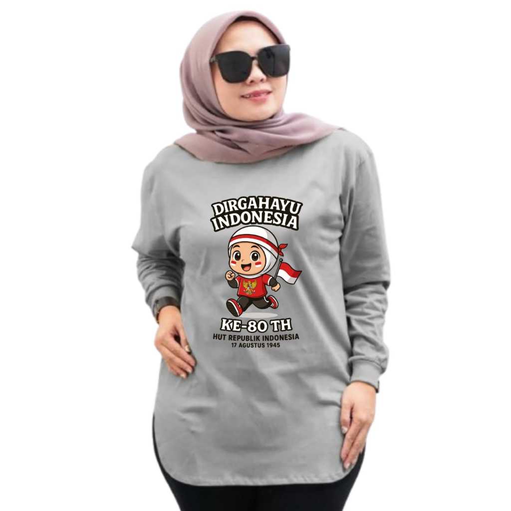 KAOS WANITA MODEL OVAL LENGAN PANJANG KEMERDEKAAN HUT RI 80 TH 2025 BUAT SERAGAMAN 2 WARNA 3 UKURAN