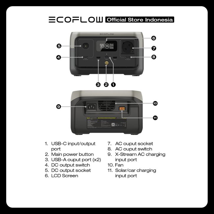 [Mall] Genset Mini Listrik Portabel EcoFlow RIVER 2 256Wh 300W Portable Power Station Outdoor Camping RV Hiking Original