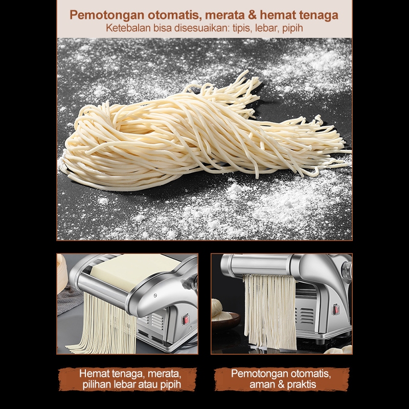 【】 Mesin pembuat mie / Mesin Mie Listrik Elektrik Otomatis / 3 Mata Gilingan Mie Alat / Penggiling Mie Full Stainless