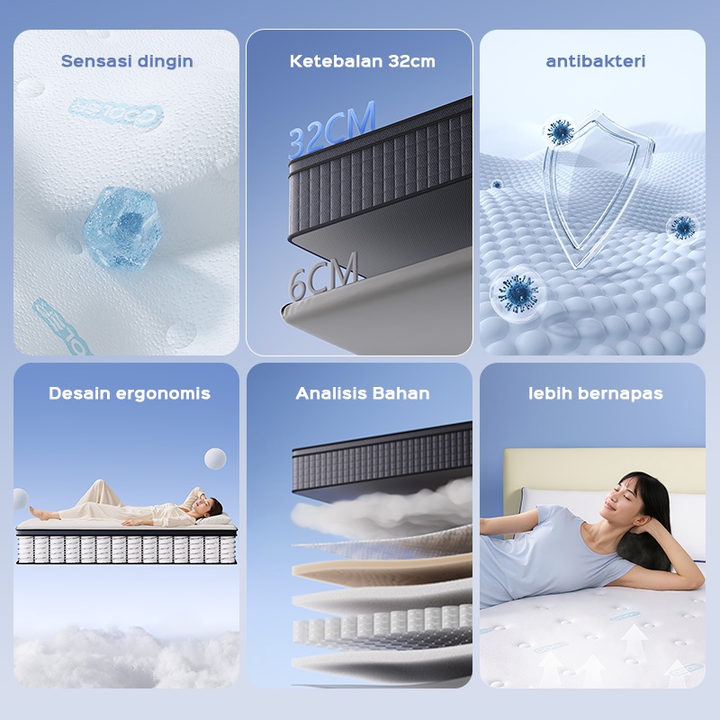 KUCA Kasur Tempat Tidur Pegas Saku Orignal Mattress Free Bantal (90cm/160cm/180cm) Ketebalan 32CM