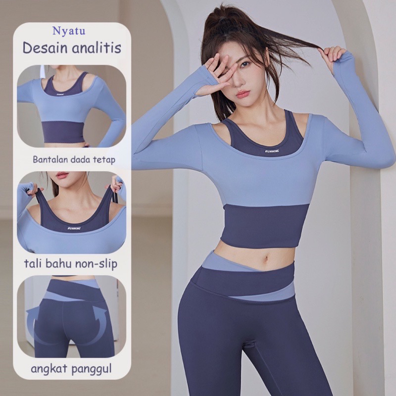 Pakaian Olahraga Lengan panjang Gym Yoga Running Panjang