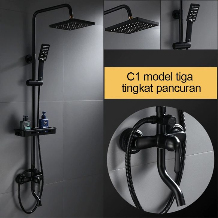 SHOWER KAMAR MANDI SET PANAS DINGIN TIANG STAINLESS + AIR KRAN CABANG + RAK HANDUK LENGKAP