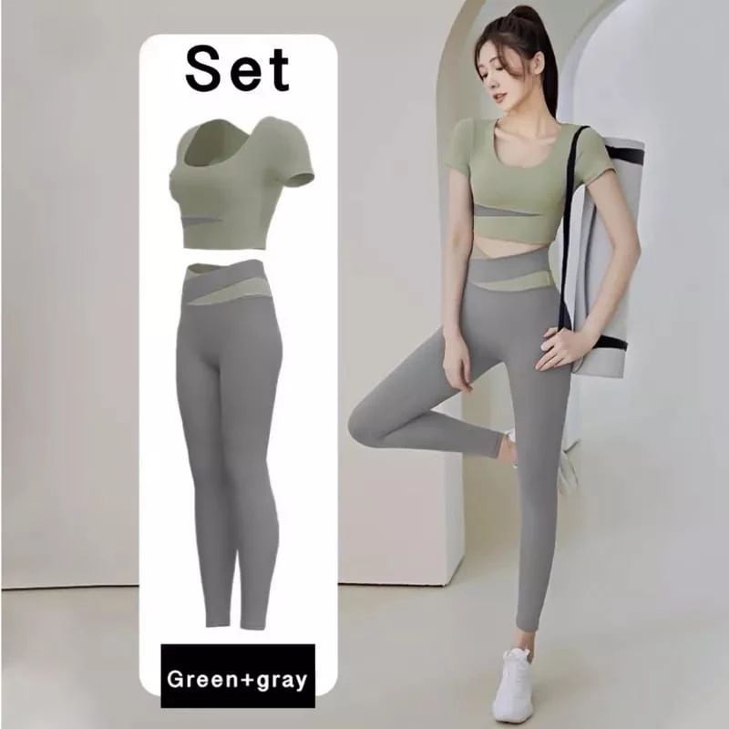 setelan baju olahraga wanita t-shirt &celana yoga pinggang zeb SET-CRML