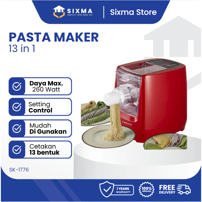 Mesin Pembuat Mie Penggiling Adonan Pasta Multifungsi Low Watt Sixma SK-1776