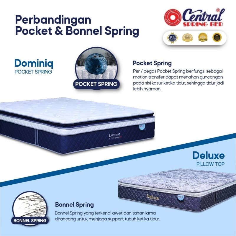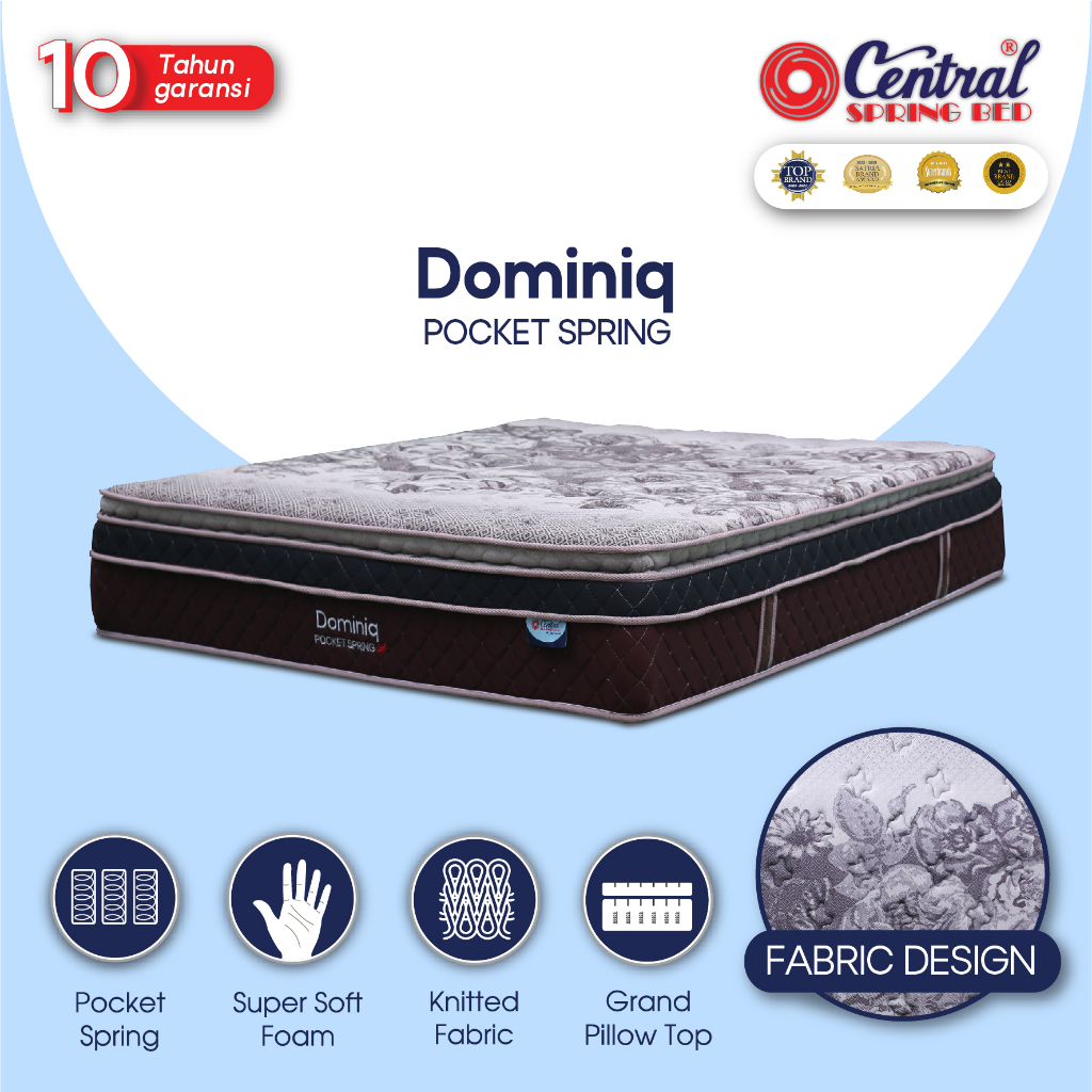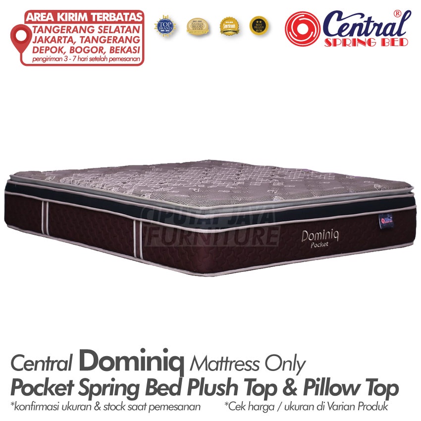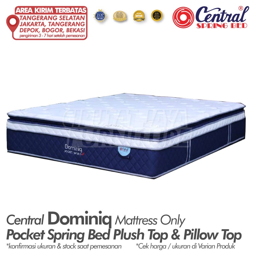 Springbed CENTRAL DOMINIQ POCKET SPRING PLUSHTOP PILLOWTOP -Kasur Central Dominiq Plushtop Pillowtop