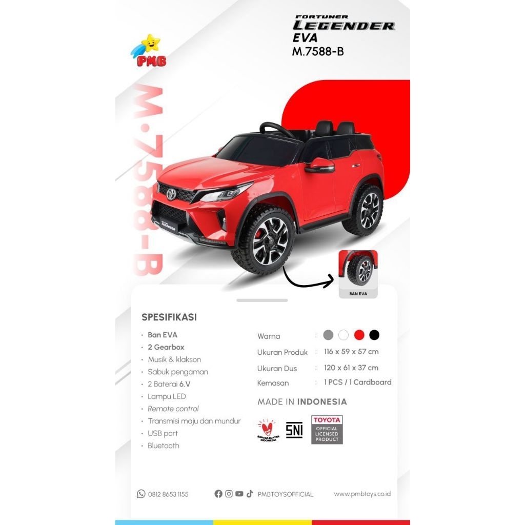 Mobil Aki Remote Control Toyota Fortuner Legender PMB M 7588 TRD VRZ PMB M 7588B BAN KARET BAN EVA PMB M7588 M7588B FORT