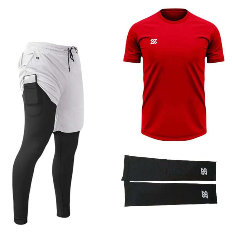 STELAN JERSEY BAJU CELANA PANJANG 2IN1 DAN MANSET TANGAN OLAHRAGA VOLI RUNNING FUTSAL JOGING GYM FITNES