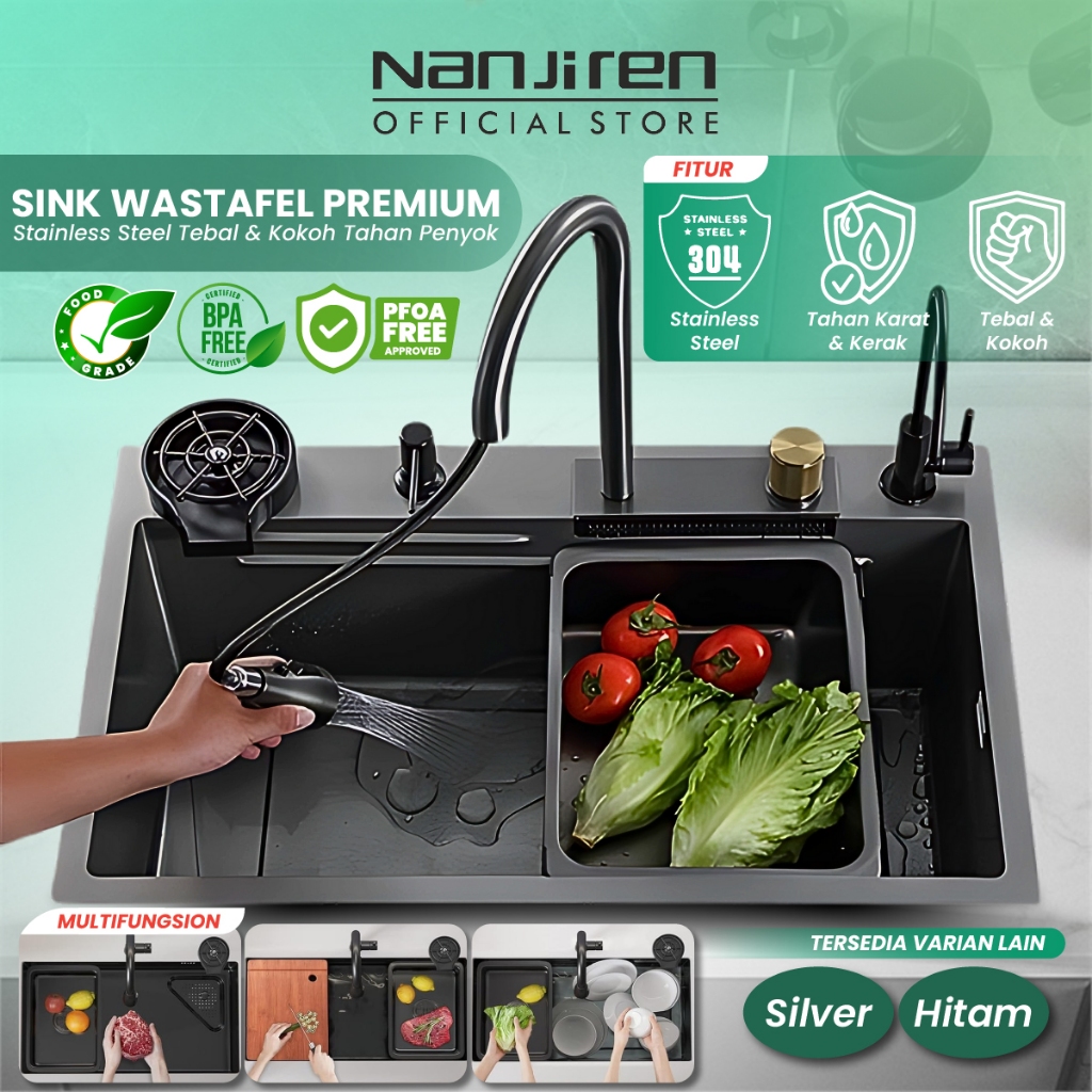 Nanjiren - Stainless Steel Kitchen sink Modern Kitchen Sink Luxury Black 1 Bowl 304 /Bak cuci piring Ketebalan 3.0mm