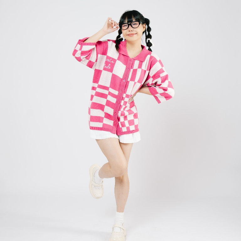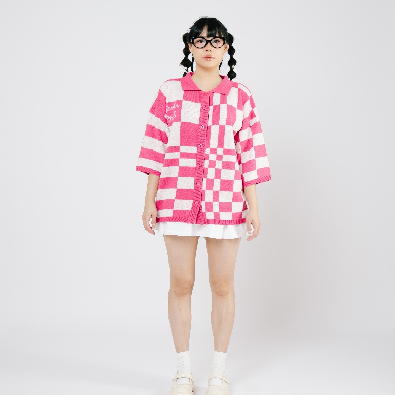Sweater Wanita Gurls Club Oversized Shirt Knitwear Sweater - Knizzle Pink