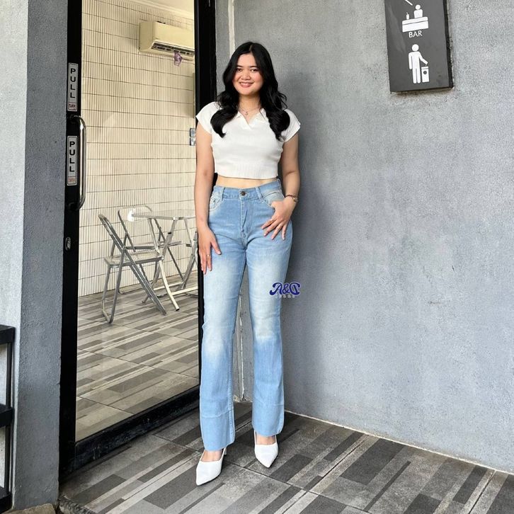 Jeans Cutbray Wanita High Waist Stretch Auto Jenjang Kekinian Cutbray Jeans basic A&D JEANS