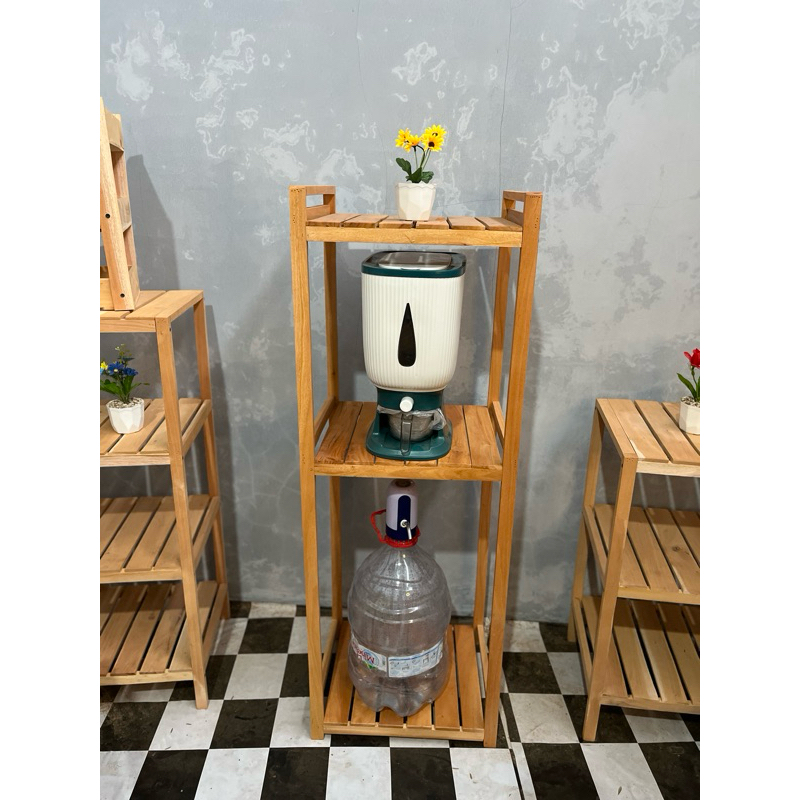RAK GALON MEJIKOM 3 TINGKAT JUMBO VERNIS RAK DISPENSER KOMBINASI RAK SERBAGUNA TINGGI 125CM