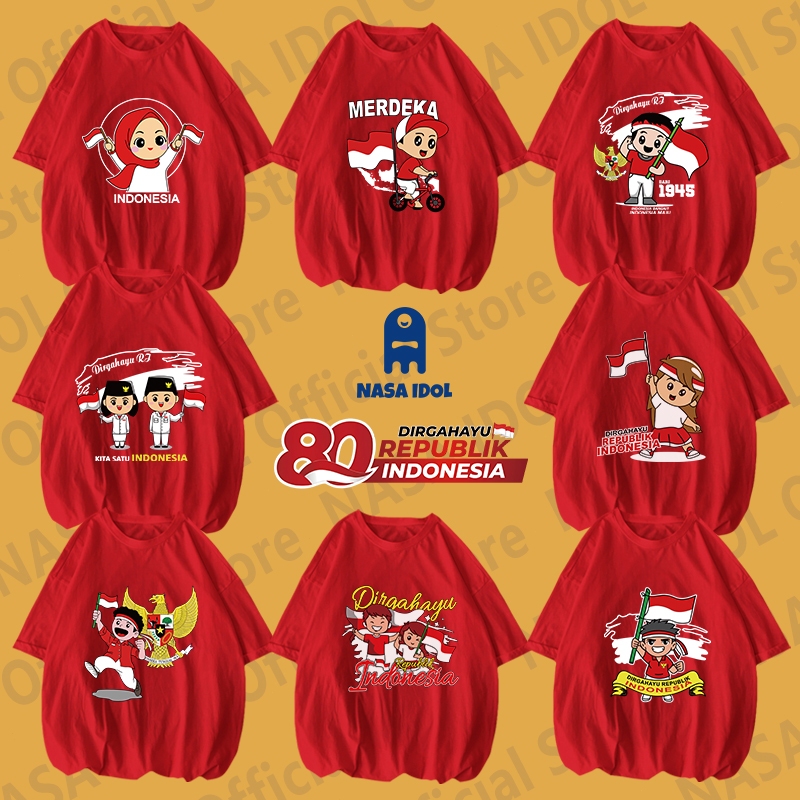 (11 MOTIF) Baju Kaos 2025 HUT Ke 80TH Kemerdekaan Agustusan 17an Wanita/Pria/kids Lengan Pendek Print T-shirt Katun Combed Lmport 30s Premium Atasan Kekinian