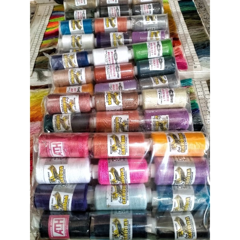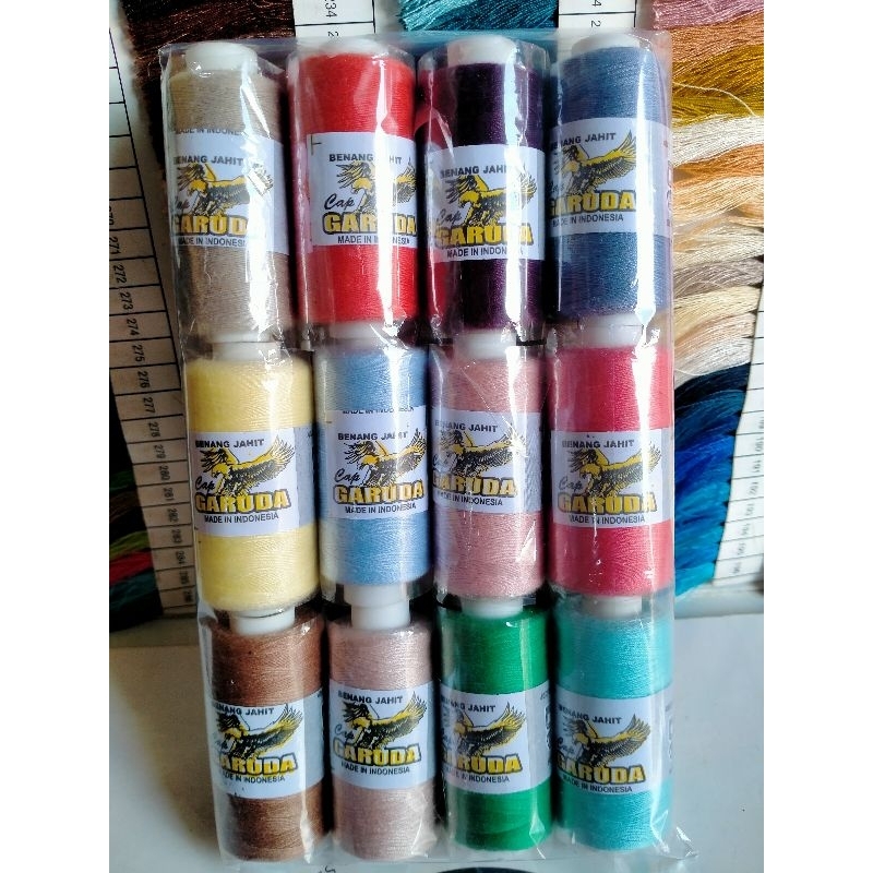 Benang jahit katun,isi12warnaTEBAL500yrd