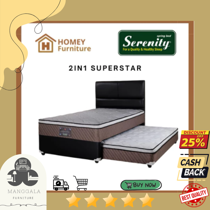 [Star] Kasur Springbed 2in1 Serenity Superstar 100x200 & 120x200 Set Divan Kasur Springbed Set Kasur Divan Murah 1Set