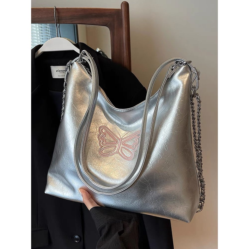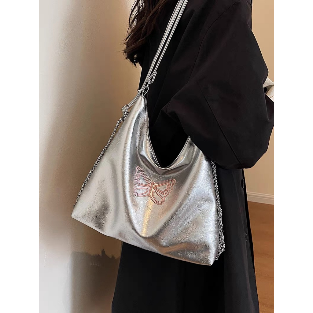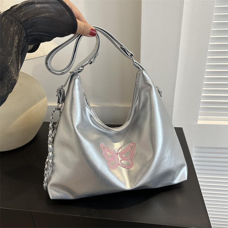 Ransel Wanita Kapasitas Besar Permukaan Lembut Kasual Ransel Gaya Baru Tas Ember Bahu Serbaguna Kupu-kupu Bordir Modis