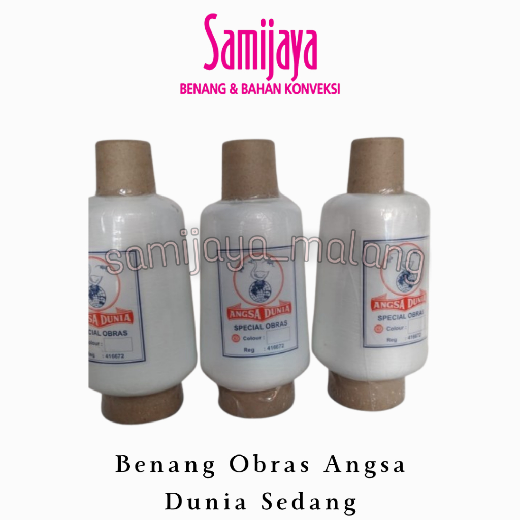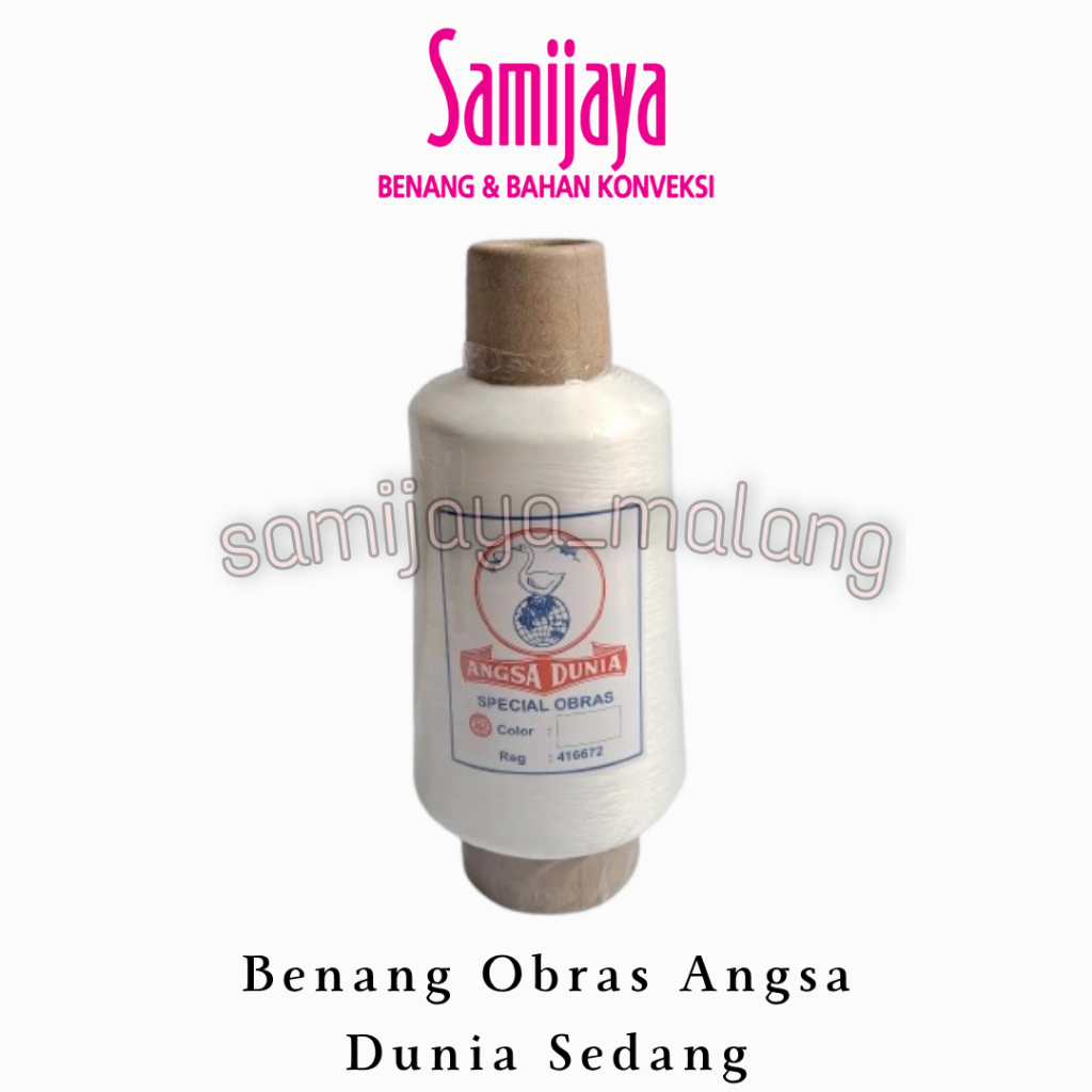 Benang Obras Polyester Angsa Dunia Sedang Putih Harga per cone