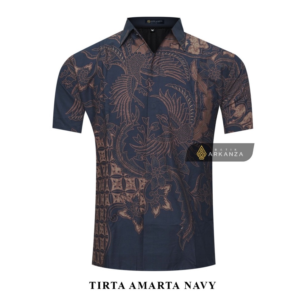 BATIK ARKANZA Motif TIRTA AMARTA NAVY Hem Atasan Kemeja Baju Batik Pria Cowok Laki Laki Slimfit Full Lapis Furing Lengan