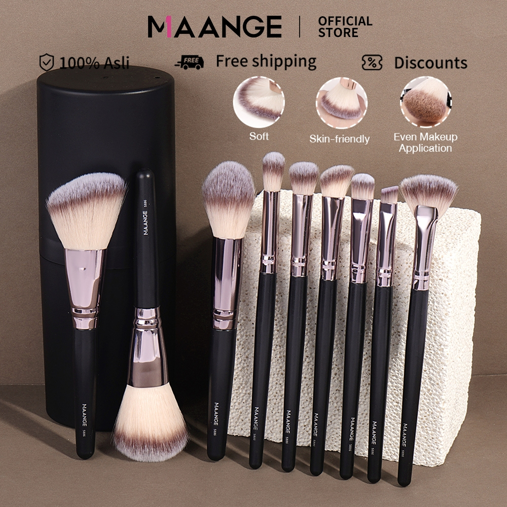 MAANGE 9Pcs Set Brush Makeup Kuas Eyeshadow Brush Kit Rambut Lembut Fluffy Alat Kecantikan Dengan Ember Kuas Organizer