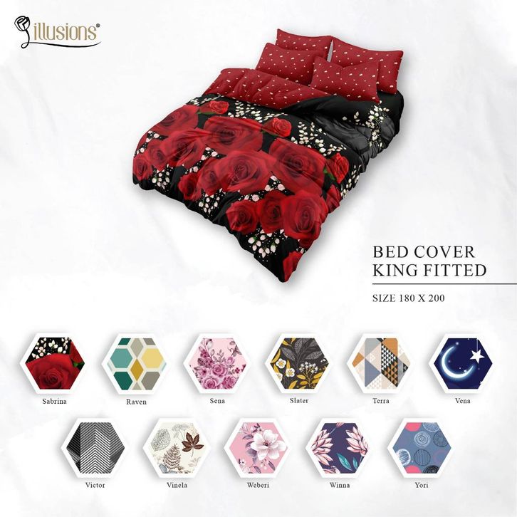 BED COVER SET Illusions PREMIUM SIZE | 100X200 | 160x200 | 180x200 | PREMIUM QUALITY BAHAN ADEM | KING SIZE SPREI