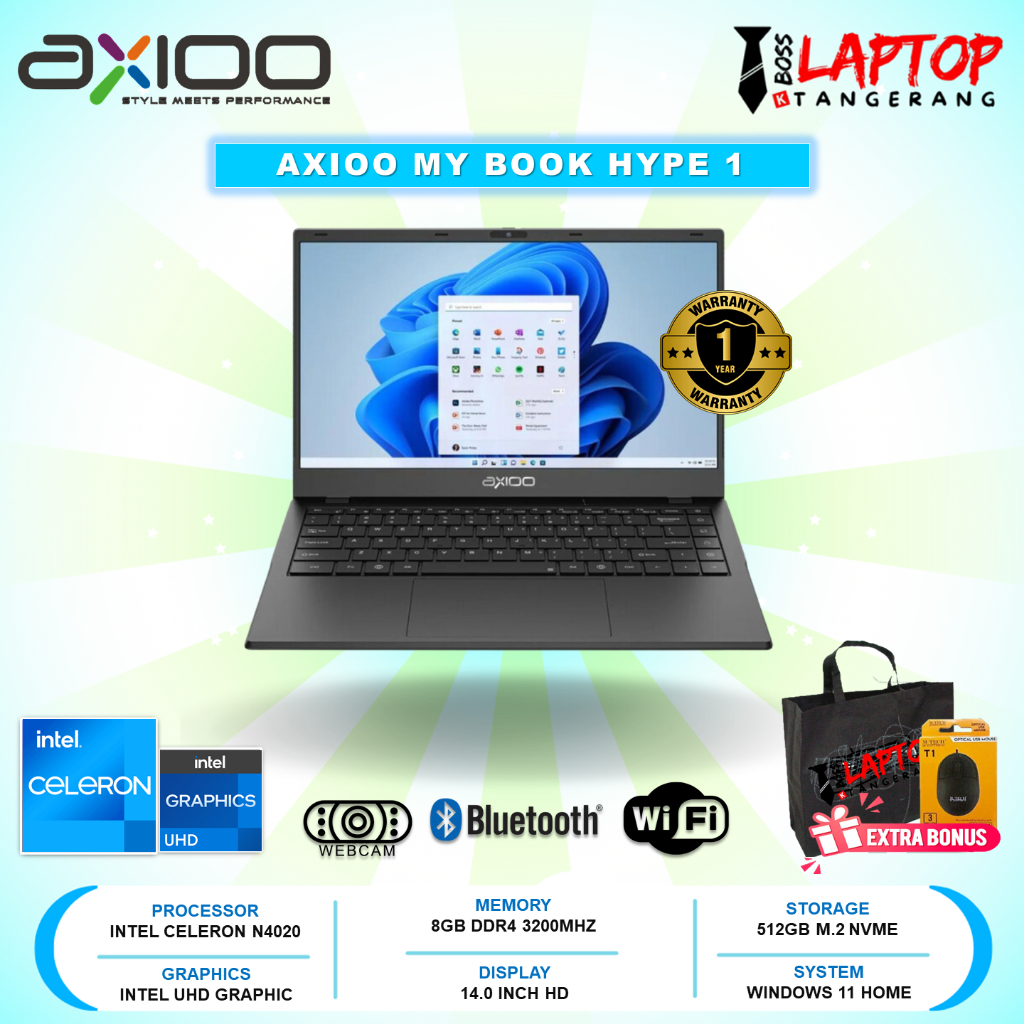 Laptop Murah Ram 8Gb Axioo Hype 1 intel N4020 256Gb Ssd 14.0 Win 11 Home New