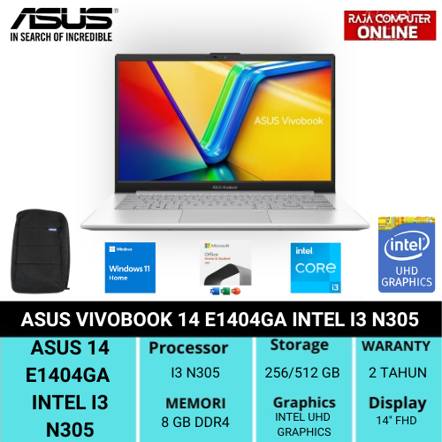 Asus Vivobook GO 14 E1404GA - I3 N305 8GB DDR4 512GB 14" FHD W11 & OHS