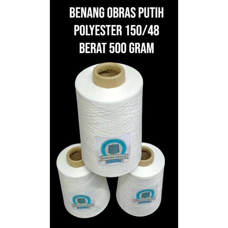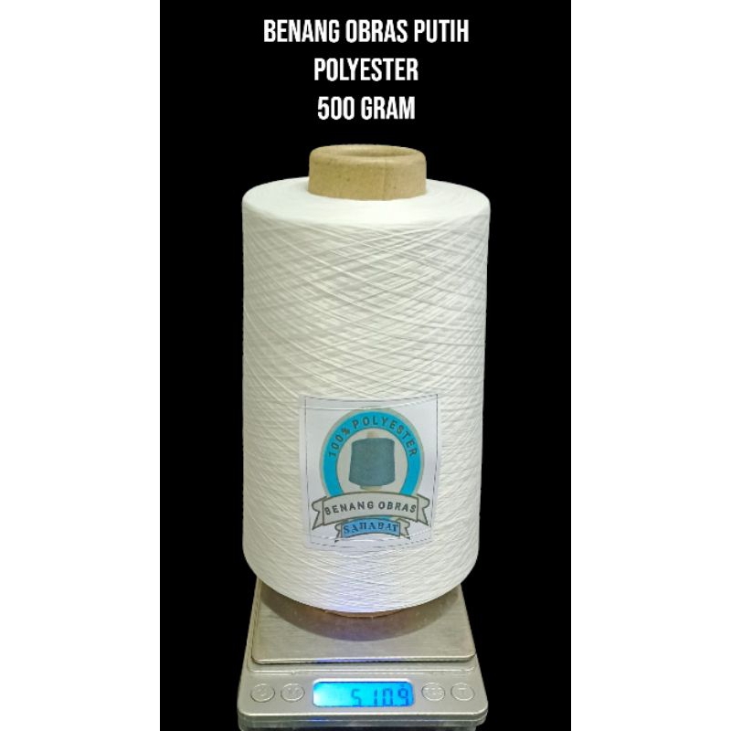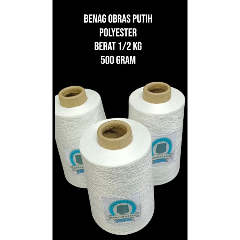 benang obras POLYESTER putih . berat 500.gram ( 1/2 kg )
