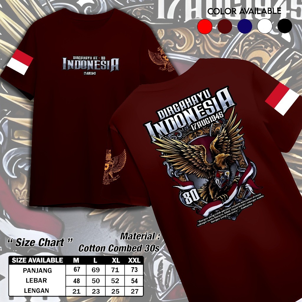 KAOS INDONESIA COUPLE Series Kemerdekaan Vol.1 Dirgahayu 80 - Baju Agustusan 2025 Dewasa Anak - Tshirt 17 Agustus Merdeka Merah