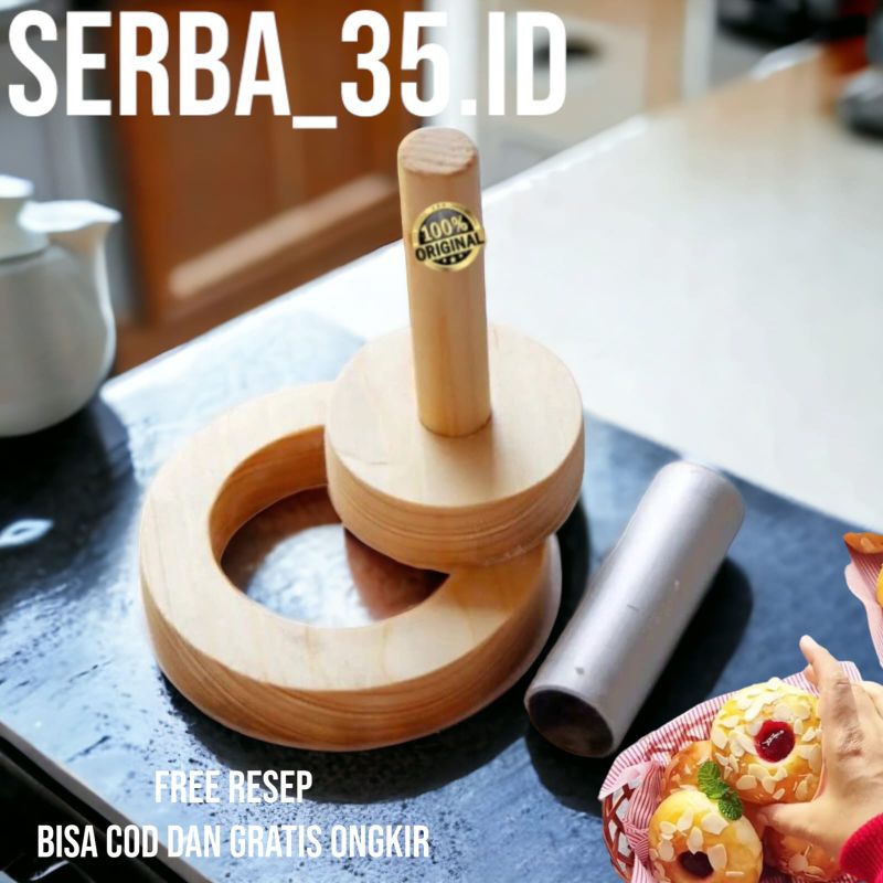 [Star] Cetakan Donat Kayu Satu Set Ring Kayu dan Pembolong