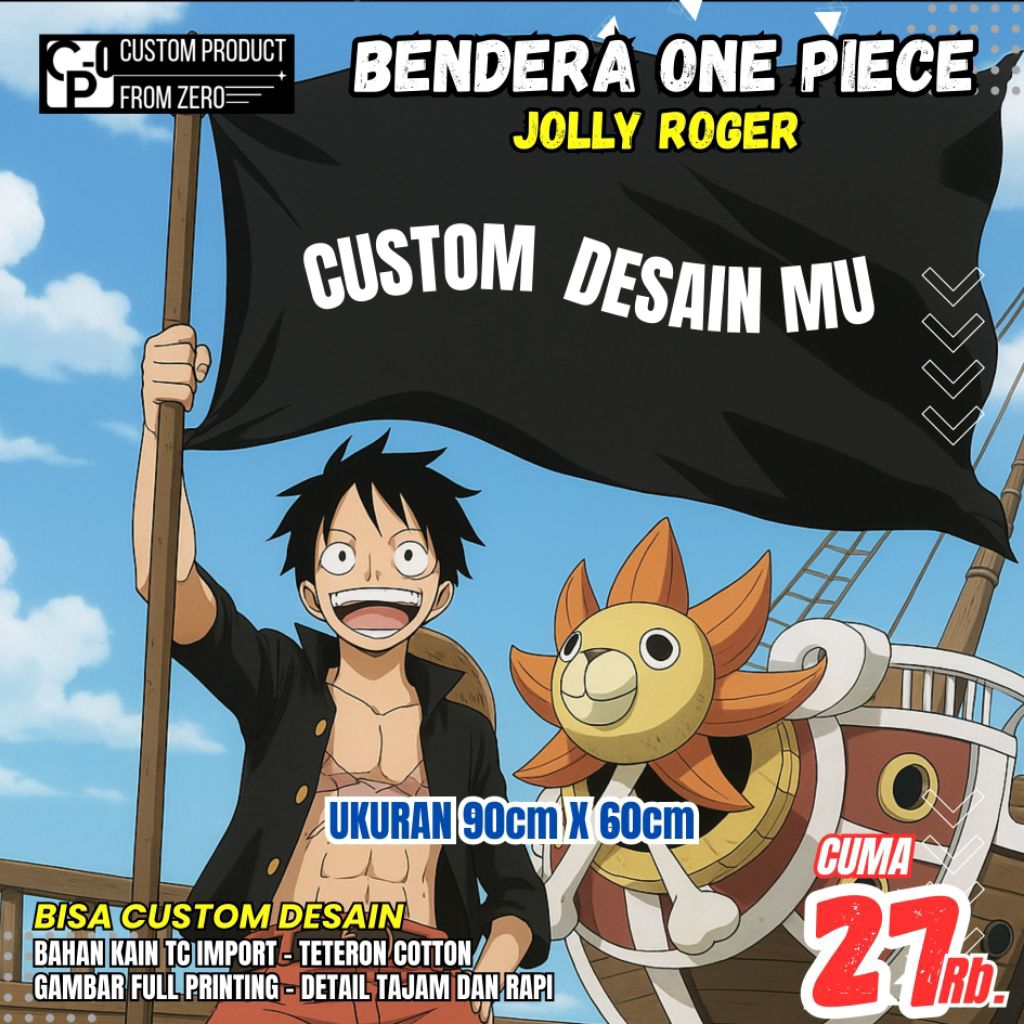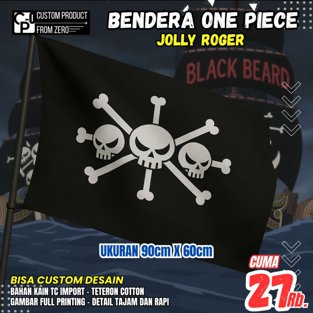 BENDERA ONE PIECE BENDERA LOGO BAJAK LAUT ONE PIECE FLAG JOLLY ROGER ONE PIECE DEKORASI KAMAR 90X60CM