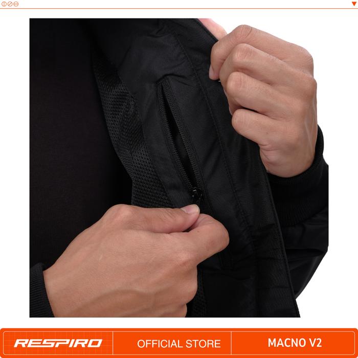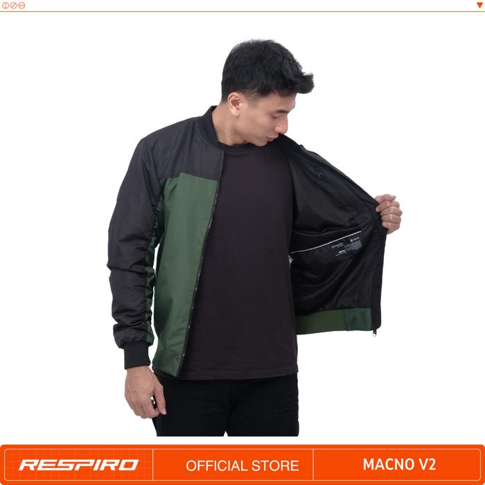 RESPIRO MACNO V2 | JAKET BOMBER LIGHT MOTOR PRIA WANITA HARIAN POLYESTER WINDPROOF - BLACK, M