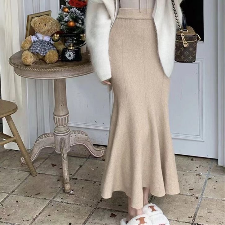 YURUMA Rok Panjang Fishtail Wanita Retro Fashion Rok Maxi Fishtail Seksi Yang Dibungkus Pinggul
