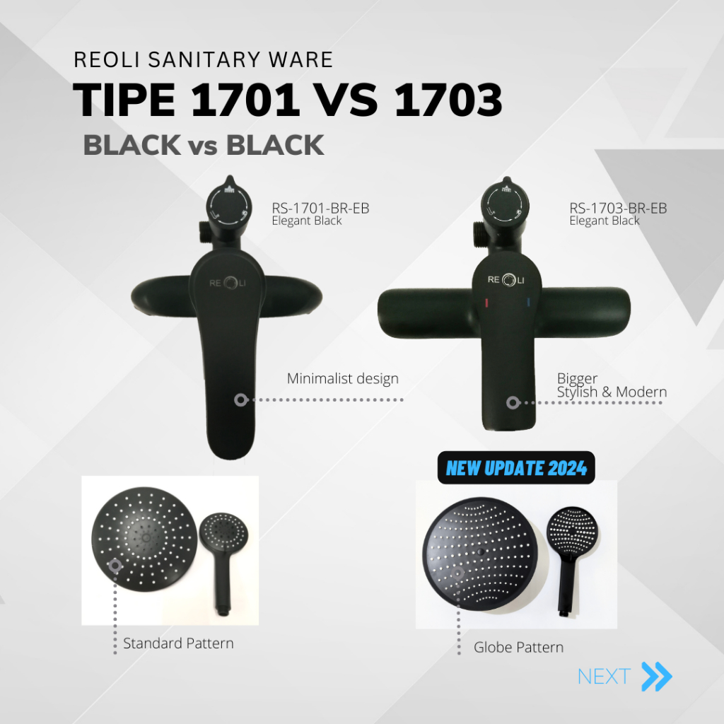 Shower Kamar Mandi Set -REOLI Shower Mandi Tiang Set Column Mandi Keran Panas Dingin Mixer Hitam 1701 Lengkap Murah