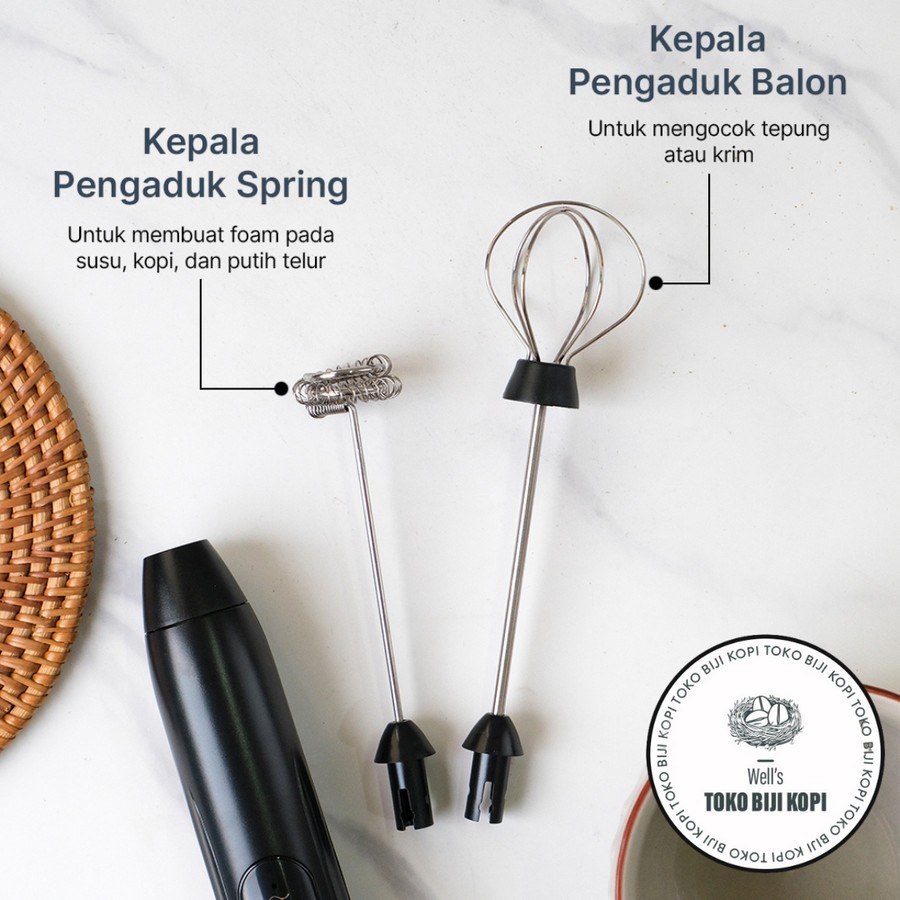 TaffHOME Hand Mixer Mini 2in1 Pengocok Telur Milk Frother Pembuih Susu Kopi Latte Art USB Charge - HMW1