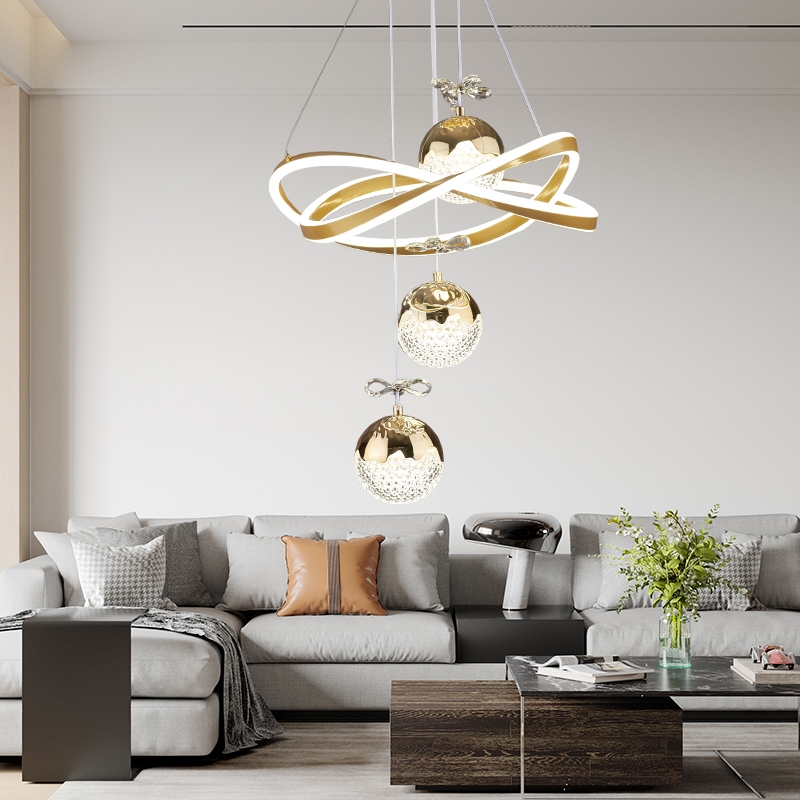 NORDIC STYLE LUXURY Lampu hias gantung ruang tamu 3 warna / lampu gantung bola ring / lampu gantung