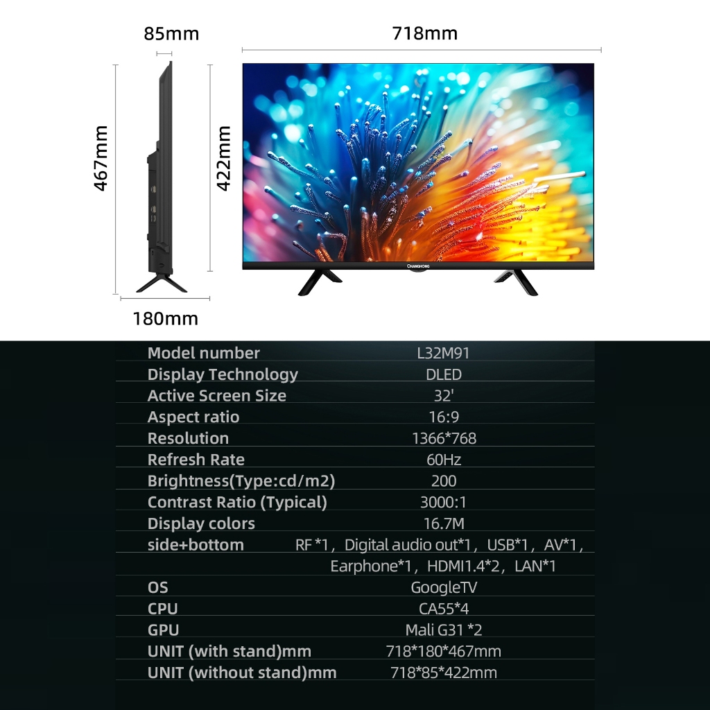 Google TV 32 inch HD Dolby Audio Google Play Netflix Youtube Bluetooth USB Google Smart Digital TV Free Vidio (L32M91)