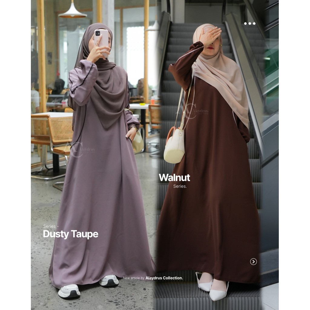 Alaydrus Collection Abaya Hitam Turkey Sheela Gamis Syari Muslimah Bahan Jetblack Hitam Saku Samping
