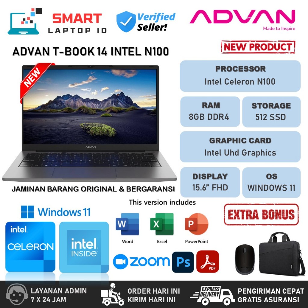Laptop ADVAN TBook Celeron N100 Intel N100 8GB/128GB (Upgradabe) 14" HD Free Windows 11