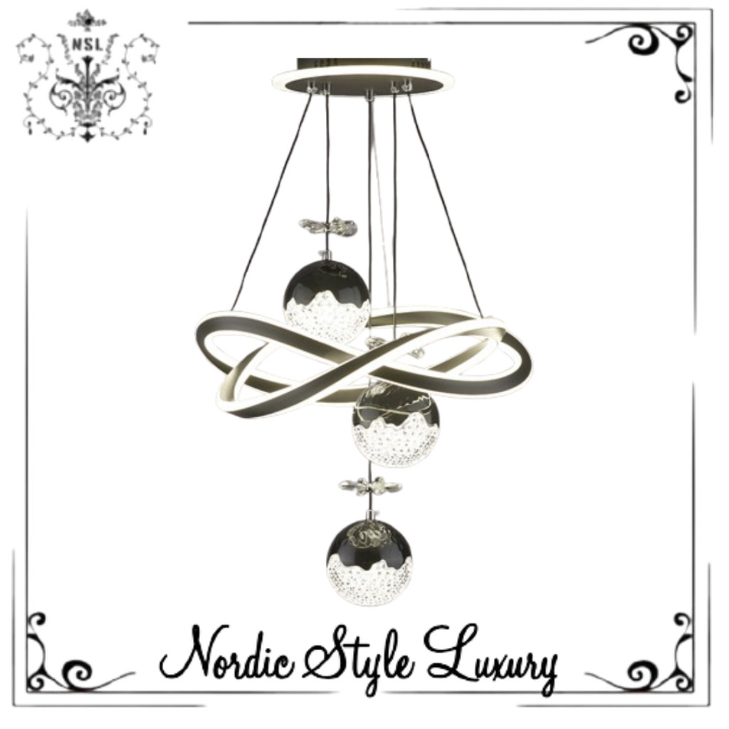 NORDIC STYLE LUXURY Lampu hias gantung ruang tamu 3 warna / lampu gantung bola ring / lampu gantung