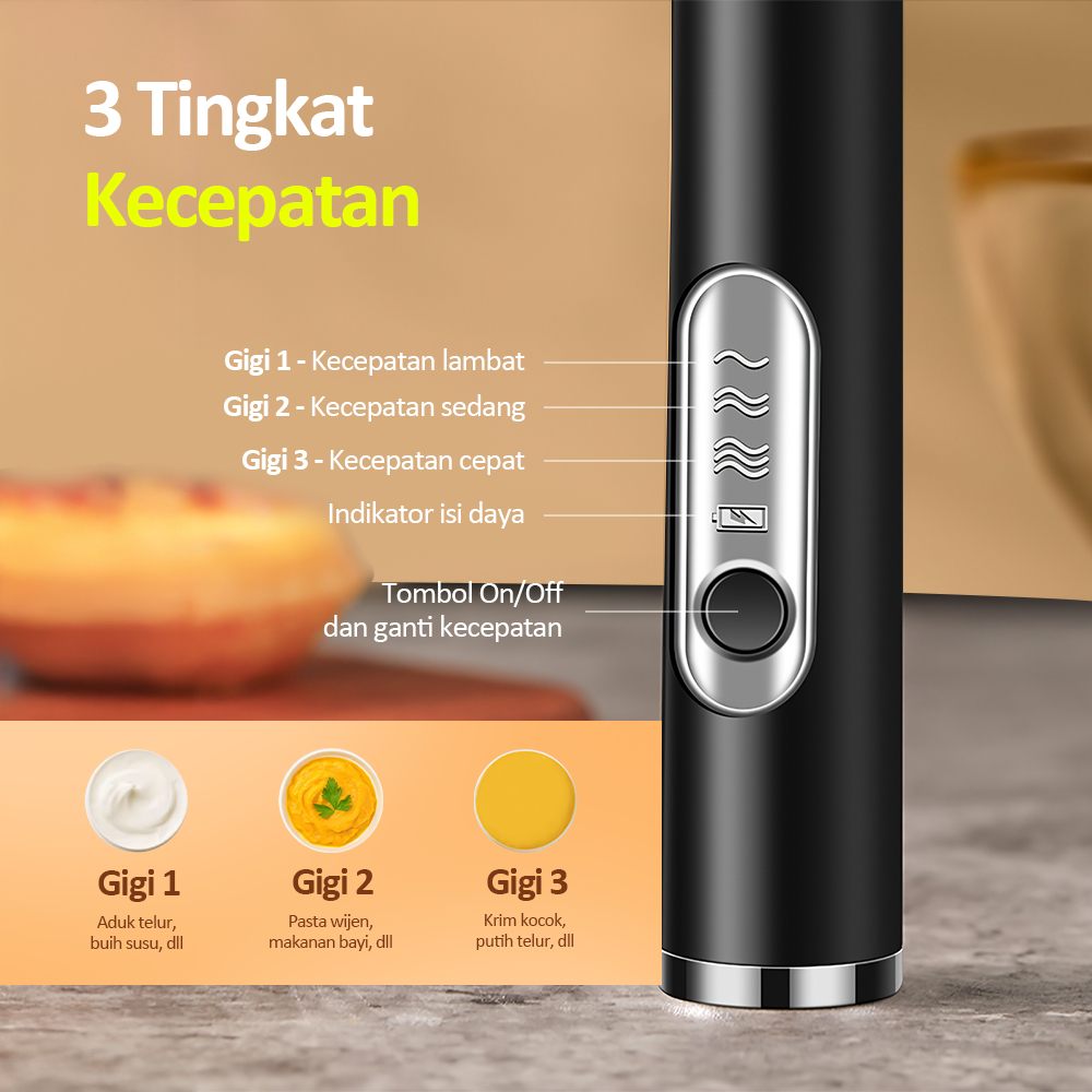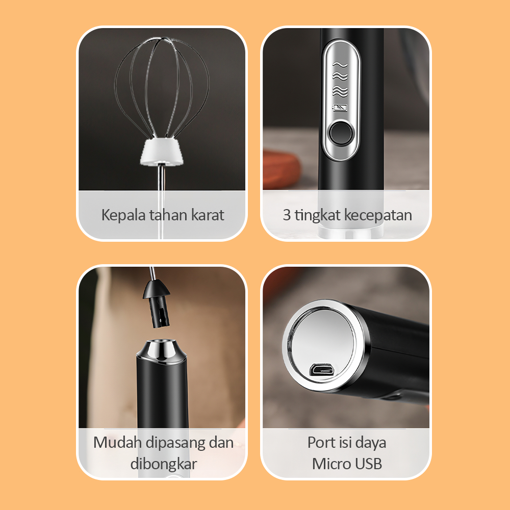 KAIKKI Pembuih Susu Pengocok Telur Handheld Blender Milk Frother Electric Mixer Portable Egg Beater USB Rechargeable